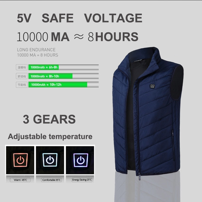 Le colis comprend : 1 x gilet d’hiver chauffé et rechargeable